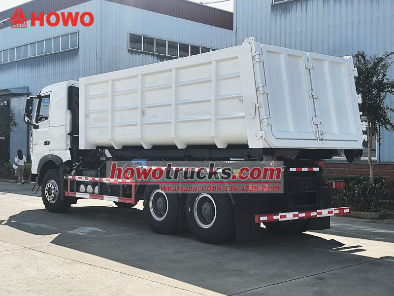 ●HOWO ilgäkli çöp daşaýjy awtoulag şassiden, gidrawliki ulgamdan, ilgäkli çöp mehanizminden we aýrylyp bilinýän çöp gutusyndan ybarat. Gidrawliki ulgam ilgäkli çöp gutusyny uzaltmak we yza çekmek üçin silindri herekete getirýär, bu bolsa çöp gutusynyň awtomatik ýüklenmegine, düşürilmegine we taşlanmagyna mümkinçilik berýär.