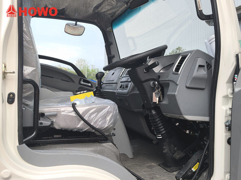 HOWO aýlanýan tirsekli hapa ýük awtoulagy HOWO 4x2 RHD şassisiniň esasynda üýtgedildi, tigir binýady 4500 mm, 154 at güýjüne eýe bolan Cummins ISF3.8S3154 dizel hereketlendirijisi, 6 çalşykly el bilen işleýän reduktor, ýokary berklikli polat aýlanýan tirsek ulgamy, gidrawliki dolandyryş enjamy we elektrik dolandyryş gutusy islege görä däl. Ähli reňkler we logotipler islege baglydyr.