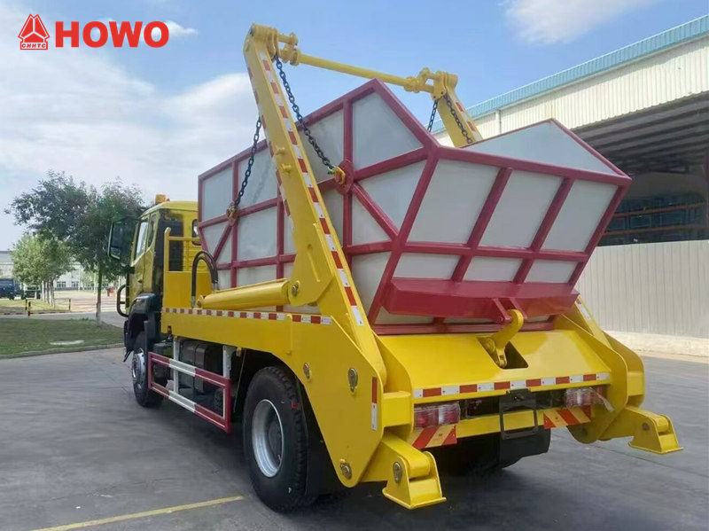 HOWO 4x2 aýlanýan ryçagly çöp daşaýjy awtoulag, çöp ýygnamak we daşamak üçin ýörite döredilen arassaçylyk ulagydyr. Onuň iň esasy aýratynlygy, çöp konteýnerini galdyrmak, ýerleşdirmek we taşlamak üçin gidrawliki ulgamy ulanýan aýlanýan ryçagly mehanizmidir, bu bolsa çeýe we netijeli işlemegi üpjün edýär.