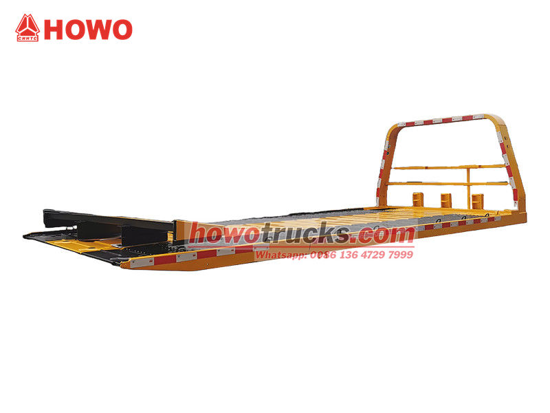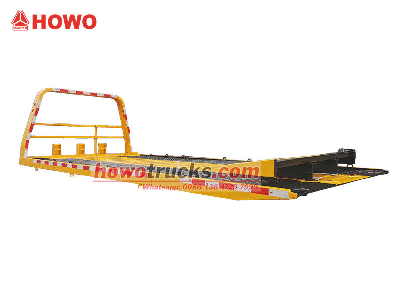 ●Ýol awtoulagynyň tekiz gurluşly gurluşy, esasan, daýanç goldan, tekiz platformadan, lebedkadan, gidrawliki ulgamdan, kömekçi amortizatorlardan we dolandyryş enjamlaryndan ybaratdyr.