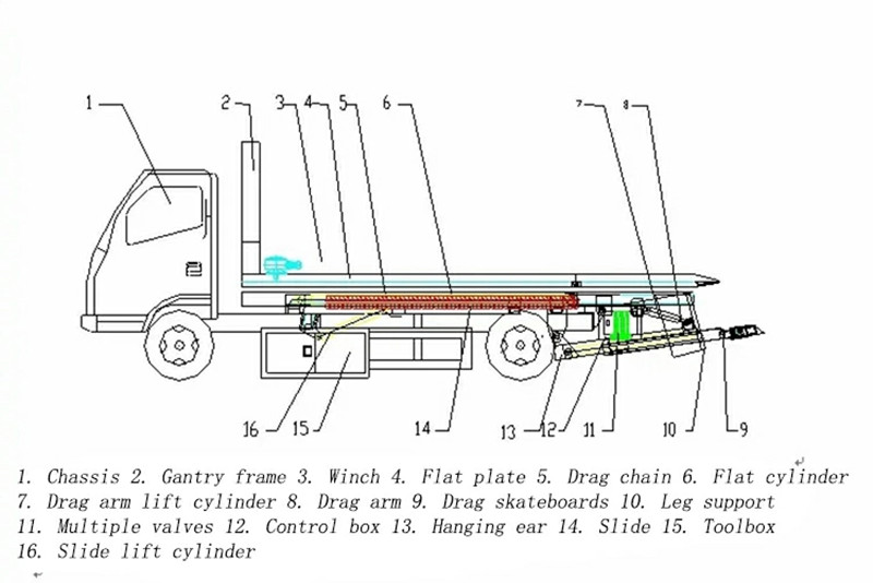 3-30 tons superstructure, 6x4, 8x43 tonnalyk üst gurluşly tekiz ýol dikeltmek ýük awtoulagy ýol ugrundaky halas ediş işleri üçin esasy enjam bolup, dartgy, götermek we süýräp çekmek ýaly esasy funksiýalary öz içine alýar. Onuň esasy gurluşy güýçli güýç we takyk işlemegi üpjün edýän gidrawliki hereketlendiriji ulgamy bilen utgaşdyrylan ýokary berklikli çarçuwa we teleskopik ştanga eýedir.