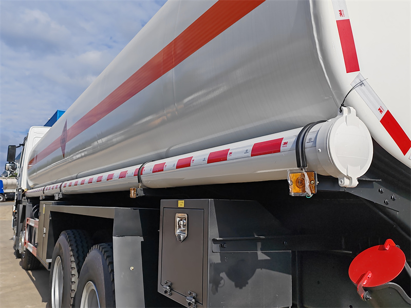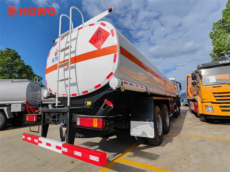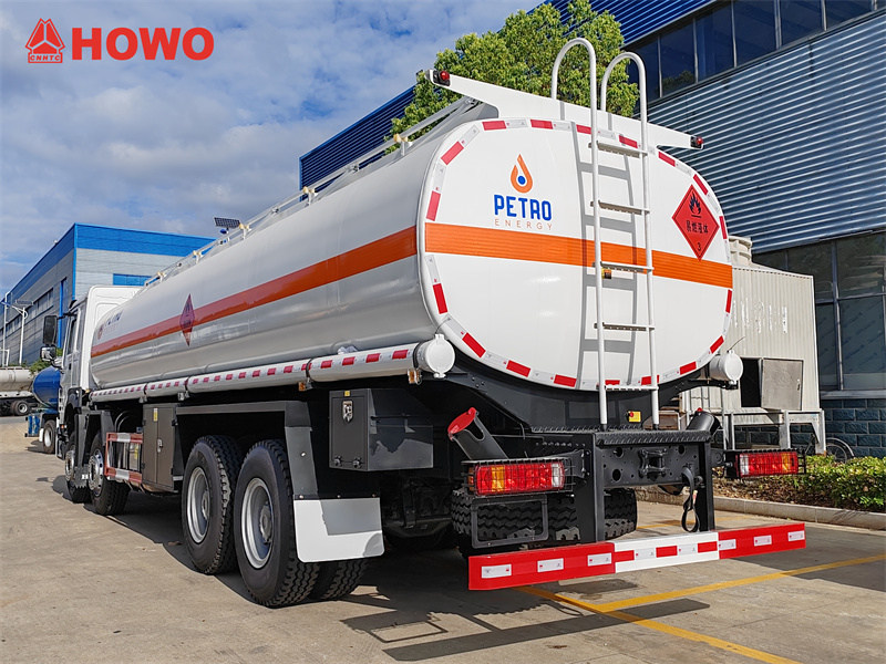 Sinotruk HOWO 8x4 25 kub metrlik nebit tanker ýük awtoulagy, Sinotruk HW76 kabina şassisini, 8x4 hereketlendirijisini, 1800+4625+1350 mm tigir binýadyny ulanýar, Sinotruk WD615.47 hereketlendirijisi, HW19710 reduktory bilen enjamlaşdyrylan, ýokarky bölegi 25 kub metrlik uglerod polatdan ýasalan nebit bakyndan ybarat bolup, 6 bölümden ybarat bolup, degişlilikde 3, 4, 4, 4, 5, 5 kub metr sigýär, her biri Ýewropa standartyndaky lyuk, aşaky klapan, nebit düşürýän klapan, ýokarky ýöreýiş ýoly, tutga, 1 adatdan daşary klapan, 2 nebit düşürýän turba bilen enjamlaşdyrylan.