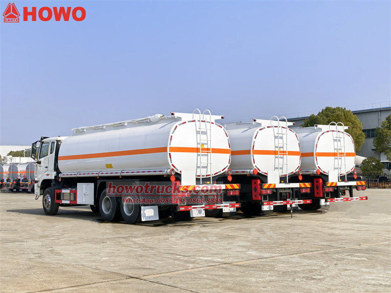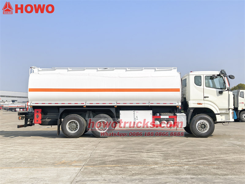Nebit bakynyň hakyky göwrümi25,000 litr. Gorag materialy hökmünde Q235 uglerod polat ulanylýar. Çegiň göwresi galyňlygy azyndan ... bolan uglerod polatdan ýasalýar.5mm. Howo ýangyç bakly ýük awtoulagy hytaý kysymly enjamlar bilen üpjün edilenmeşhurmarkaly nasoslar, klapanlar we turbalar, şeýle hem ýangyç paýlaýjylaryň toplumy. Nebit çelek aňsat işlemegi üçin basgançak bilen üpjün edilen we zerurlyklara görä birnäçe bölümlere bölünip bilner.