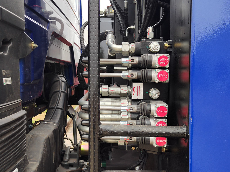 ♦“Howo” galyndylary gysyşdyryjy ýük awtoulagy itekleýjileri ýa-da skreperleri herekete getirmek üçin gidrawliki ulgamy ulanýar, boş galyndylary gysyşdyryjy kamerasyna itekleýär we gysyşdyrmak üçin ýokary basyş ulanýar.