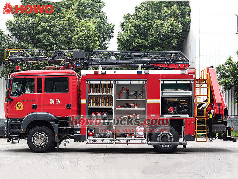 13000The Howo arial basgançakly ýangyn halas ediş ulagy ýangyn söndürmek we halas ediş işleri üçin ýörite döredilen ýöriteleşdirilen ulagdyr. Ol Howo TX seriýaly şassi platformasyny ulanýar, güýçli 400 at güýjüne eýe bolan hereketlendirijisi we ajaýyp hereketlendiriji ukyby bilen öwünýär. Ýük awtoulagy ýagty gyzyl reňkli ýangyn söndüriş ulagyna boýag bilen boýalýar we dürli halas ediş enjamlary üçin köp sanly saklama bölümleri bilen enjamlaşdyrylandyr.
