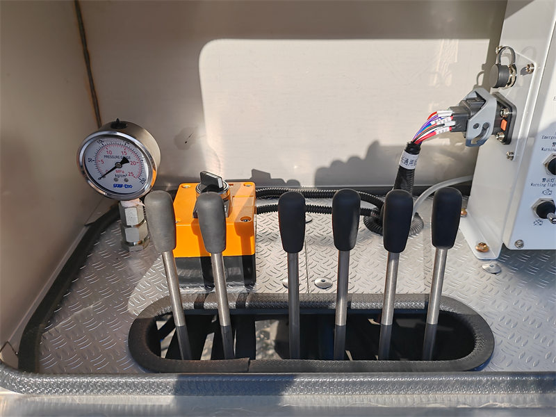4. Enjamlaryň opsiýalary: Ýokary hilli gidrawliki bölek, bir derejeli teleskopik göteriji gol, iki sany 12 tonnalyk gidrawliki lebedka, gurallar gutusy, iki sany awrigger, el bilen işleýän enjam, iki sany prožektor, bir signalizasiýa lampasy we esasy aksessuarlar
