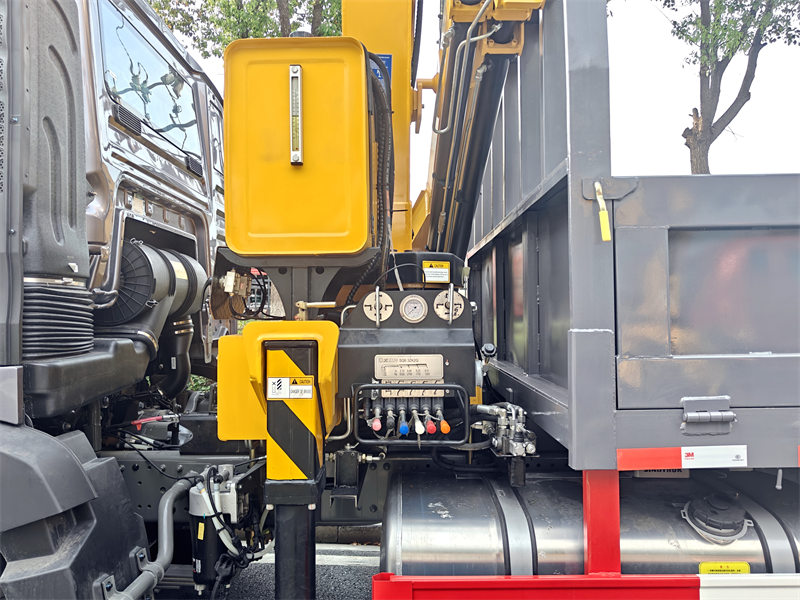Ýokarky beden-nyň Howo ýük ýük maşyny bilen enjamlaşdyrylan gatlamakiň ýokary göterijilik ukyby bolan bumly kran 6 tonnawe doly 520° aýlanma. Kranyň agramy 1700kg we gurnama meýdany 750 mm. Dürli zerurlyklary bolan ulanyjylary ýeňilleşdirmek üçin dolandyryş paneli iňlis ýa-da başga dillerde saýlanyp bilner.