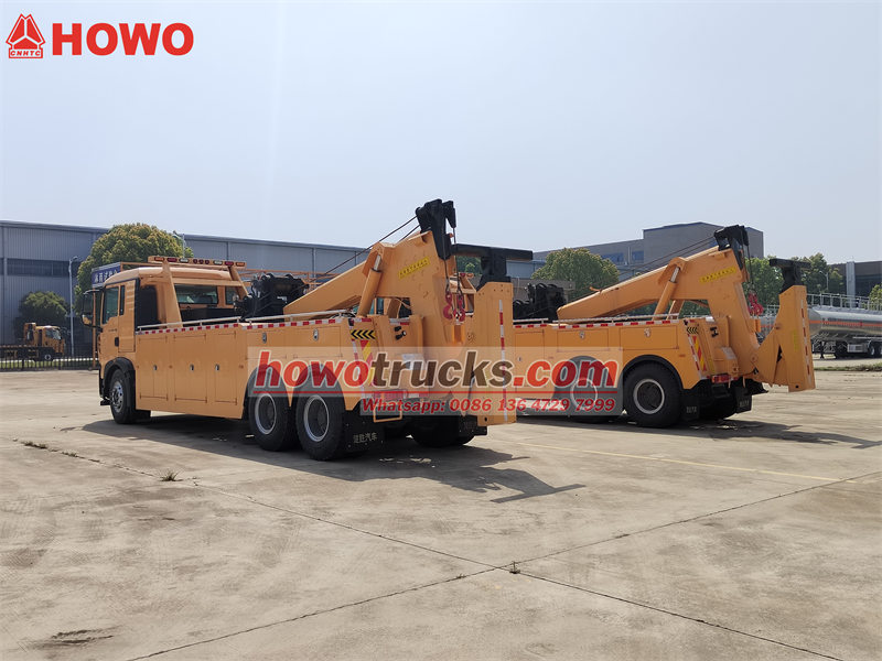 “Howo 6x4” awtoulagy berk gidrawliki awtriger ulgamy bilen üpjün edilen (her awtrigerde 12,5 tonna götermek üçin niýetlenen), giň goldaw aralygyny üpjün edýär we agyr ýükleri halas ediş işlerinde howpsuzlygy we durnuklylygy üpjün edýär. Sary reňkli bir hatarly we ýarym ýatylýan kabina (başga reňkler hem bar), 400L uly göwrümli ýangyç çelek, 24V elektrik ulgamy, doly duýduryş yşyklandyryşy (duýduryş çyralary, stroboskop çyralary) we gurallar gutusy we beýleki aksessuarlar ony giň gerimli professional awtriger we halas ediş enjamlaryna öwürýär, bu bolsa toplumlaýyn funksiýalary we güýçli öndürijiligi bilen tapawutlanýar.