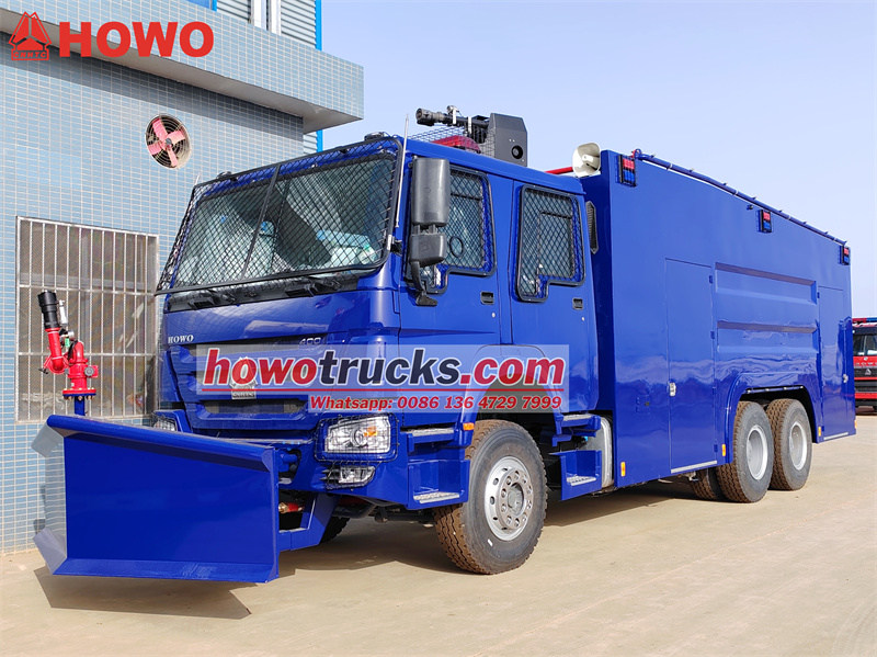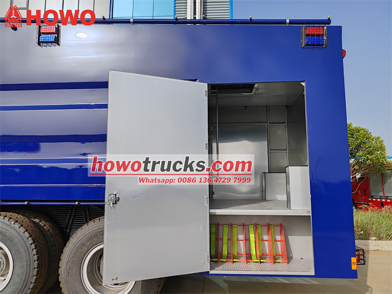 Sürüjiler öňünden howpsuzlyk çärelerine we uzakdan hyzmatdaşlykly operasiýalara ünsi jemläp, ýöriteleşdirilen sürüjilik başarnyklaryna we adatdan daşary ýagdaýlara jogap bermek ukyplaryna eýe bolmalydyrlar. “Howo Fire Control Riot Truck” awtoulagynyň bak göwresi 6-10 mm galyňlykda ýokary berk uglerodly polatdan ýasalýar. Ol 6000 litr suw we 2000 litr köpük saklap bilýär, bu bolsa ony nebit, himiýa we beýleki pudaklar üçin aýrylmaz howpsuzlyk enjamyna öwürýär.