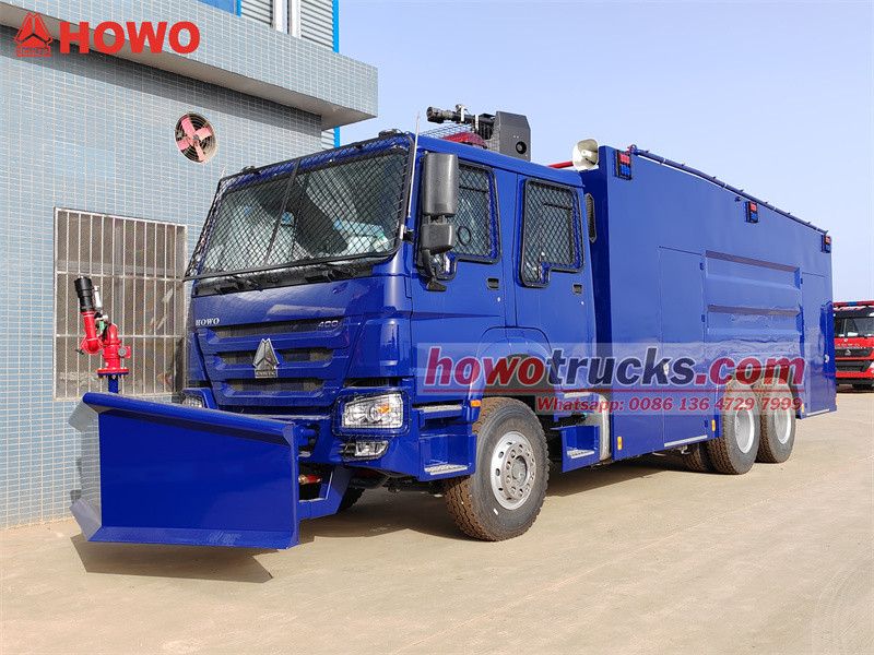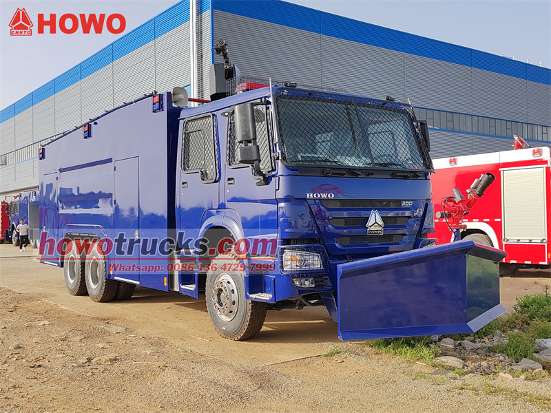 18000(2 axles)The HOWO zirhli ulagy köpçülikleýin hereketi gözegçilikde saklaýar “Sinotruk HOWO HW76” iki kabinaly agyr ýük göteriji şassisine esaslanýan, 6x6 derejeli doly tigirli, partlamaga çydamly ulagdyr. Onuň içine goşulan partlamaga çydamly göwresi, ýokarsynda uzakdan dolandyrylýan esasy top we öň tarapynda berk suw topy bar. Ol ýokary basyşly suwuň, boýagyň we köpügiň multimediýa arkaly püskürdilmegini goldaýar, 70 metrden gowrak aralyga täsir edýär we üç ölçegli bidüzgünçiligiň öňüni almaga mümkinçilik berýär.