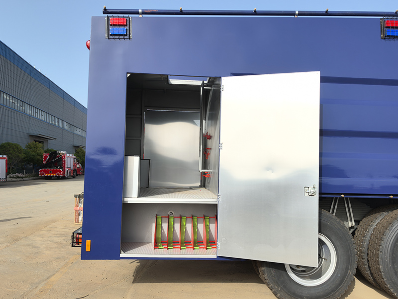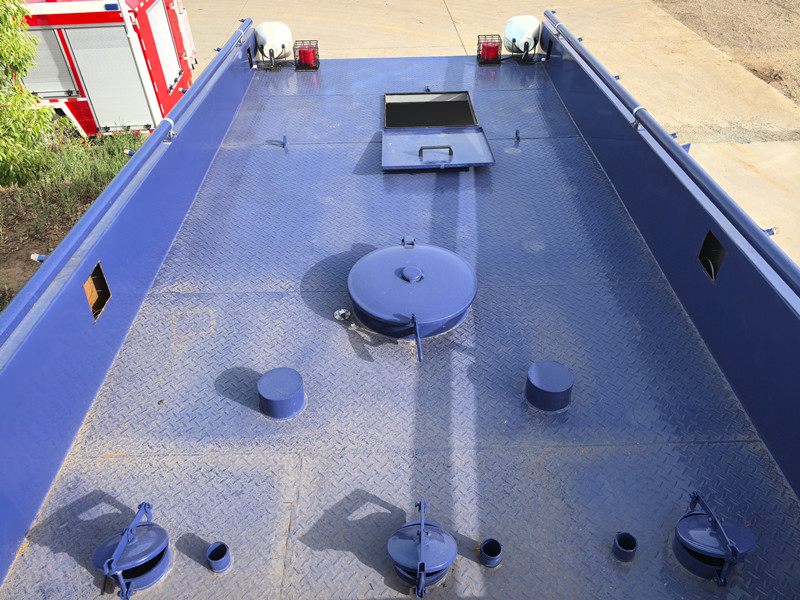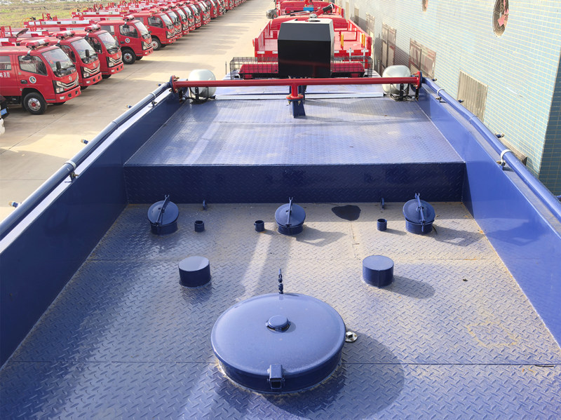 2. Suw topy: Ulagyň üçegine 70 metr aralyga we 40 metrlik öňüni alyş täsirine eýe bolan uzakdan işleýän, elektrikli, DC pitneçileri gözegçilik edýän suw topy oturdyldy we pitneçileri uzak aralyklara dargadyp bilýär. 40 L/s akym tizligi bolan öňe atylýan, üýtgemeýän kömekçi suw topy kabinanyň öňünde oturdyldy we esasy top üçegine goýlan üç ölçegli çarpaz ot açyş ulgamyny emele getirýär.