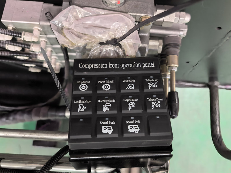 ♦Hapa ýükleýjiniň içine goýlanda, gidrawliki ulgam hapalary gysyş kamerasyna iteklemek üçin itekleýjiniň pyçagyny herekete getirýär. Gidrawliki silindr tarapyndan herekete getirilýän gysyş plitasy öňe hereket edip, hapalary gutularyň öňüne gysýar.
