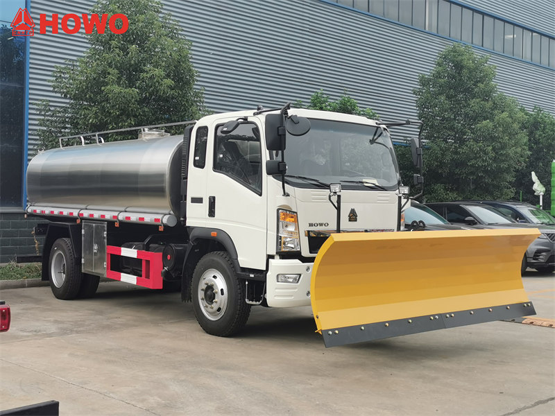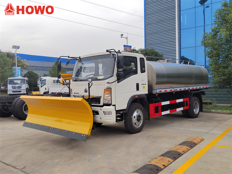 Bu HOWO içimlik suw ýük awtoulagy Öň tarapynda oturdylan gar arassalaýjy maşyn bilen täzelikçi enjamlaşdyrylan bolup, ol ±30° gapdal öwrülip, 30-50 km/sagat iş tizliginde 200 mm çuňluga çenli gary arassalap bilýär, bu bolsa ony köpugurly çözgüt edýär. Ol gyşda gar arassalamak işlerini ýerine ýetirip, gündelik içimlik suwuny daşamak zerurlyklaryny netijeli kanagatlandyrýar, bu bolsa ony şäher arassaçylyk hyzmatlary we örän sowuk sebitler üçin ajaýyp saýlaw edýär.