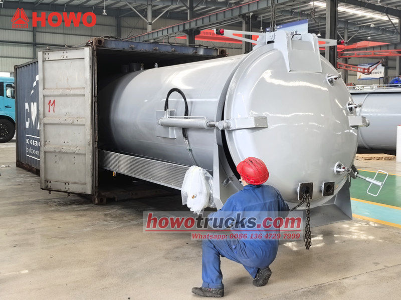 Howo 8cbm çukur suw akdyryjy tankeriň göwresi (şeýle hem 8cbm wakuum suw akdyryjy nasos ýük awtoulagynyň toplumy, 8000 litrlik wakuum suw akdyryjy ýük awtoulagynyň ýokarky göwresi, 8cbm wakuum kanalizasiýa suw akdyryjy ýük awtoulagynyň toplumy, kanalizasiýa zyňyjy tankeriň ýokarky göwresi toplumy, 8cbm wakuum suw akdyryjy ýük awtoulagynyň üst gurluşy, laý wakuum suw akdyryjy nasos ýük awtoulagynyň toplumy, wakuum suw akdyryjy ýük awtoulagynyň ýokarky göwresi toplumy we ş.m. diýlip atlandyrylýar) hapa suw ýaly suwuklyklary arassalamak we ýygnamak üçin şassilere oturdylar. Ol kanalizasiýany, çukury, çukury, jülgeleri we ş.m. arassalamak üçin amatlydyr.