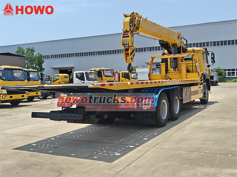 Bu 8T kranly Howo ýastyk ýük awtoulagy köpugurly we gowy dizaýn edilen ýörite ýük awtoulagydyr. Ol dürli iş zerurlyklaryny kanagatlandyryp bilýän, 260 at güýjüne eýe bolan hytaý markaly "Yuchai Engine" dizel hereketlendirijisi bilen enjamlaşdyrylandyr. Täze "M9 luxury" kabinasy üç adamy ýerleşdirip bilýär we howa kondisioneri bilen enjamlaşdyrylandyr, bu bolsa sürüjiler we operatorlar üçin amatly sürüş şertlerini üpjün edýär. Kran teleskopik bum bolup, iň ýokary göterijiligi 8000 kg, doly aýlanyşy 360° we iň ýokary göterijiligi 16,5 m bolan.