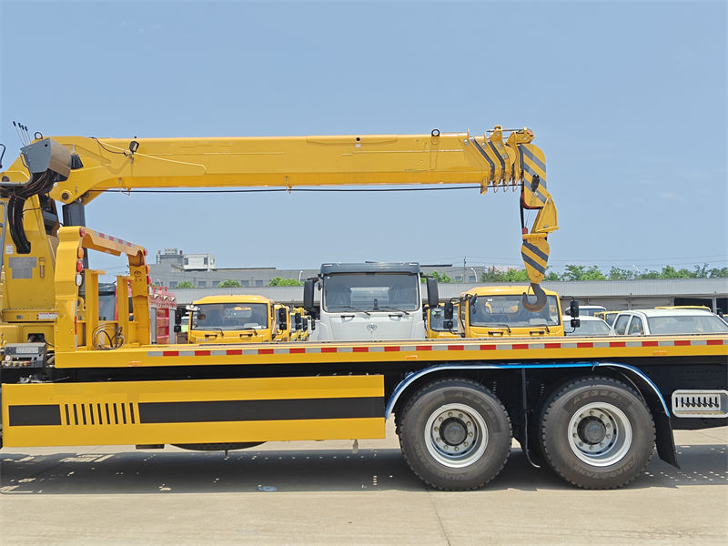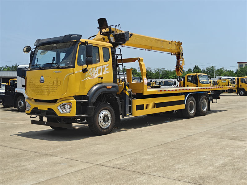 13000*2Bu 8T kranly Howo platformaly evakuator ýük awtoulagy köpugurly we gowy dizaýn edilen ýörite ýük awtoulagydyr. Ol dürli iş zerurlyklaryny kanagatlandyryp bilýän, 260 at güýjüne eýe bolan hytaý markaly "Yuchai Engine" dizel hereketlendirijisi bilen enjamlaşdyrylandyr. Täze "M9 luxury" kabinasy üç adamy ýerleşdirip bilýär we howa sowadyjy bilen enjamlaşdyrylan bolup, sürüjiler we operatorlar üçin amatly sürüş şertlerini üpjün edýär. Kran teleskopiki bum bolup, iň ýokary göterijiligi 8000 kg, doly aýlanyşy 360° we iň ýokary göterijiligi 16,5 m bolan göterijilik ukybyna eýedir.