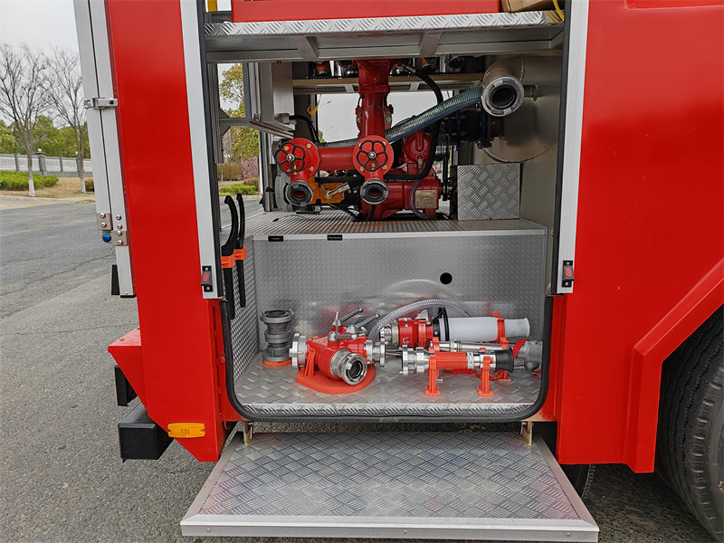 Ýangyn nasosy PTO arkaly herekete getirilýär, basyş diapazony 1,6-2,5 MPa we akym tizligi 80-120 kg/s. Ýangyn topunyň püskürme tizligi 60-100 kg/s we aralygy 40-60 metr bolup, dürli ýangyn ýagdaýlaryna netijeli jogap berip bilýär.Howo ýangyn söndüriji ulagy şeýle hem kürekler, lomlar, paltalar we kesiji enjamlar ýaly standart ýangyn halas ediş enjamlarynyň doly toplumy bilen üpjün edilen, şeýle hem basgançaklar we prožektorlar hökmany däl.
