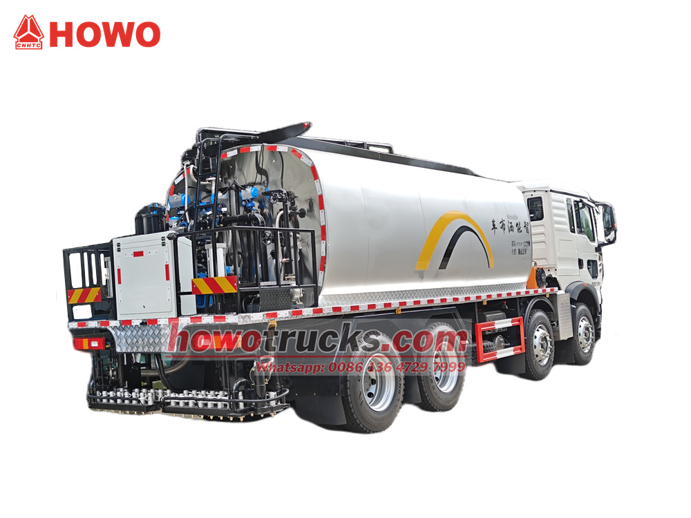 17500(2 axles)The HOWO TX mobil bitum sepijileri ýol abatlaýyş işleri üçin ýörite döredilen. HOWO 8x4 350 at güýjündäki agyr ýük göteriji şassi esasynda döredilen ulag emulsiýalaşdyrylan we gyzgyn asfalt bilen utgaşykly 18 kub metrlik köpugurly asfalt çelek bilen üpjün edilen. Ol takyk we netijeli temperatura gözegçiligi üçin italýan G20 dizel ýakyjysyny we awtomatiki termal ýag gyzdyryjy ulgamyny ulanýar. Ulagyň arka tarapynda 36 takyklykly burun bar, olar nemes Siemens intellektual ulgamyny ulanyp, 6 metr giňlikde ýaýramagy we 0,2-3 kg/m basgançaksyz gözegçiligi amala aşyrýar.². Ulgam her bir nasadkanyň garaşsyz işlemegini goldaýar. Ulag netijeli gyzdyryş, akylly dolandyryş we takyk ýaýratma ulgamyny öz içine alýar, bu bolsa ony ýokary derejeli ýol gurluşygy we abatlaýyş işleri üçin amatly edýär.