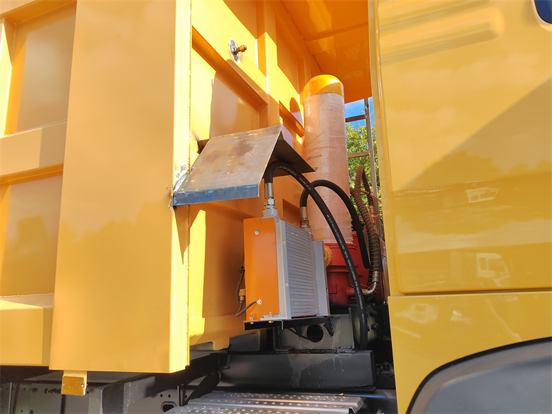 Optional front snow removal shovelThe HOWO TX Gum duzy bilen gar eräp gidýän serişdä doly ýük awtoulagynyň içine gurlan gar ereýän suw ýaýradyjy we öň tarapyna oturdylan gar arassalaýjy çotkasy bolan gar arassalaýjy ulagdyr. Güýçli Sinotruk HOWO şassisinde gurlan bu awtoulagyň öň tarapynda uly, gidrawliki hereketlendirijili gar arassalaýjy rolik çotkasy bar, ol ýoldan gary çalt arassalaýar. Yzky ýük awtoulagynda 10 kub metrlik gar ereýän suw ýaýradyjy ulgam bar, ol 2-12 metr aralygynda sazlanyp bilýän ýaýradyjy giňligi we dolandyrylyp bilýän ýaýradyjylygy bolan spiral konweýer ulgamyny ulanýar. ±3% takyklyk. Bu köpugurly ulag gar arassalamak we gar ereýän suwlary ýaýratmak mümkinçiliklerini birleşdirip, şäher magistral ýollarynda we awtoýollarynda gar arassalamak işleriniň netijeliligini we umumy netijeliligini ep-esli ýokarlandyrýar.