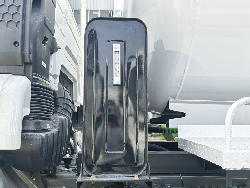 5. Auxiliary Components: Integrated water-gas separator, oil-gas separator, hydraulic oil tank, right-side ladder, tank top guardrail, transparent liquid level pipe (real-time monitoring of tank liquid level), tailgate discharge valve, and suction hose.